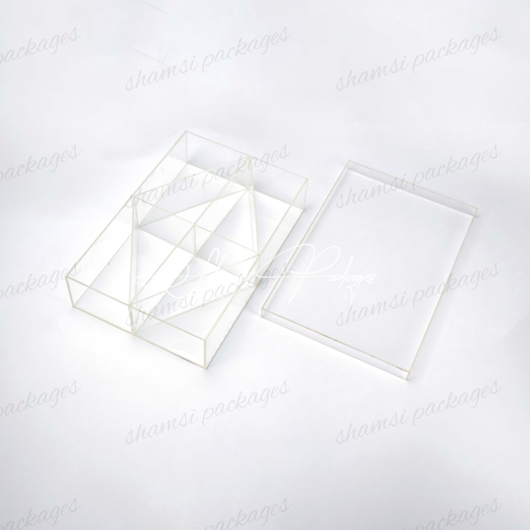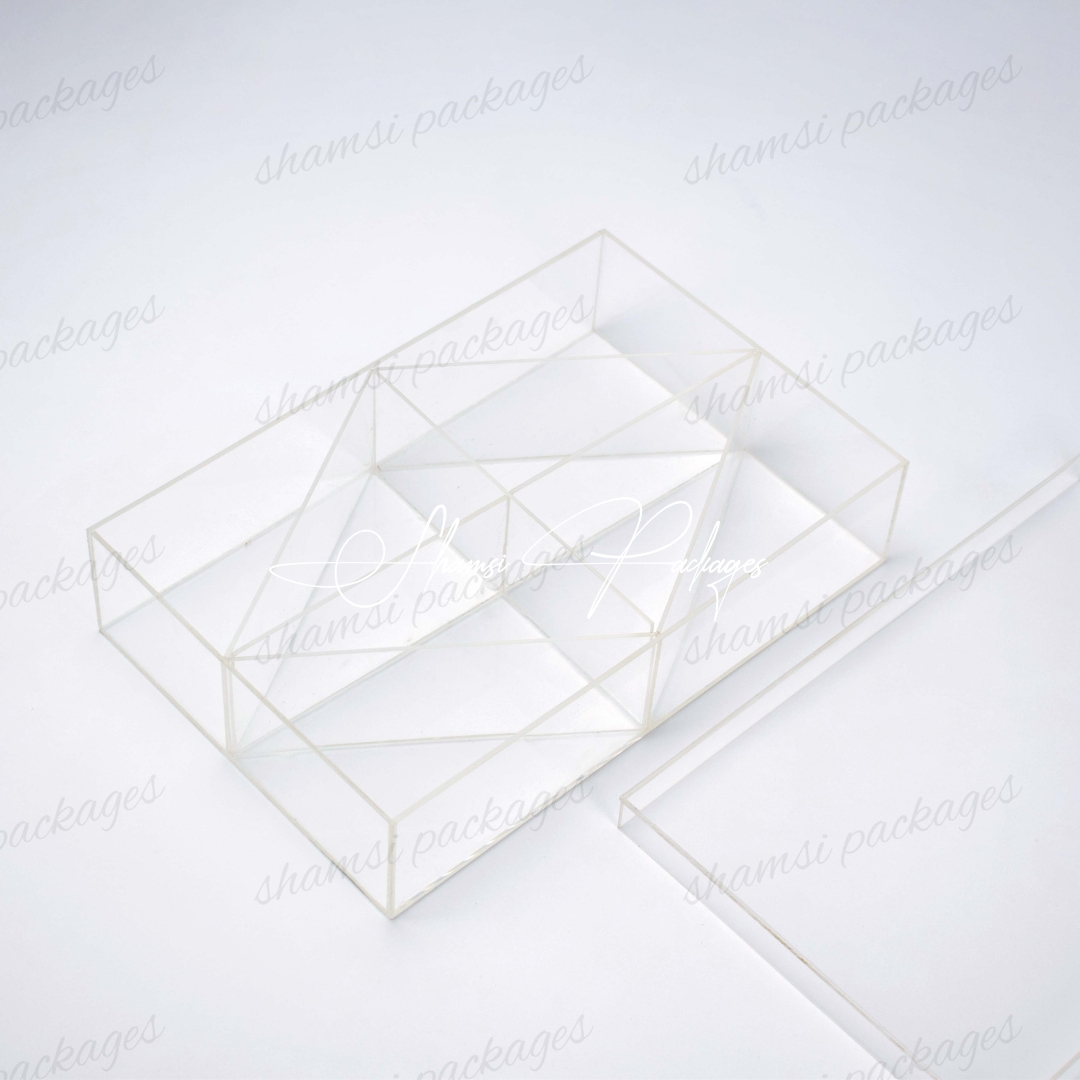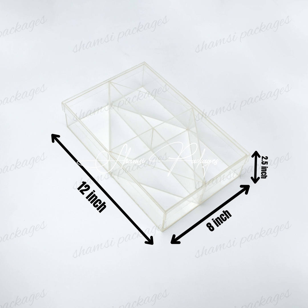 Present your gifts with the elegance of a purse using our unique Transparent Acrylic Purse Bag. This stylish bag offers a modern take on gift packaging with its full purse-like design. Crafted from premium, crystal-clear acrylic, it provides a stunning, full-view display of your contents. The subtle small side walls keep your gifts—from sacred items for Umrah Tabarruk to precious gifts for Eidi, engagements, and weddings—securely in place while showcasing them beautifully. It’s the perfect choice for making any occasion truly special and unforgettable.