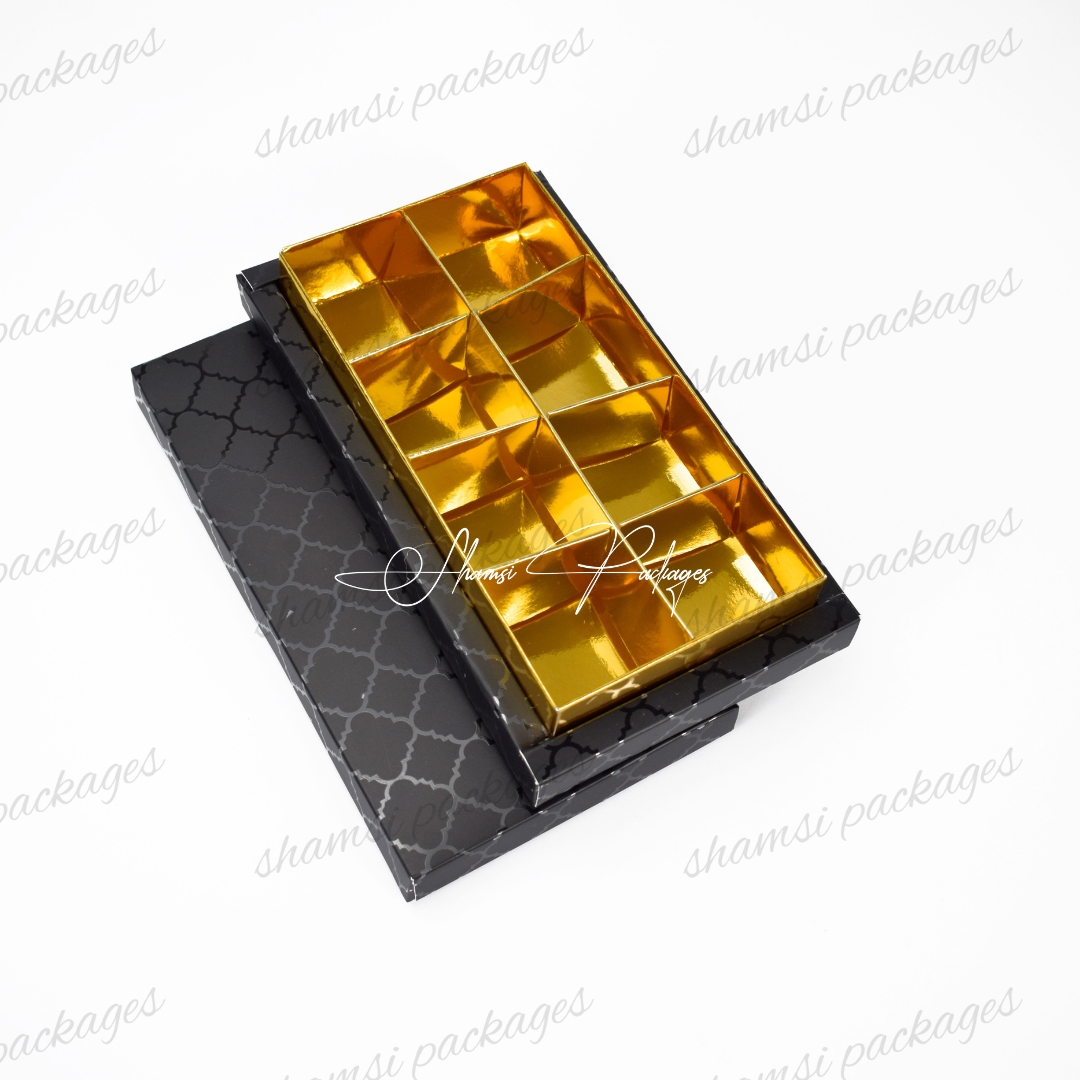 Showcase your treats with our elegant Sweet Cavity Box. The box is made from premium printed card material, enhanced with a vibrant UV design. The centerpiece is a stylish golden insert, with perfectly sized cavities to hold your chocolates, sweets, or dates. It’s the perfect packaging solution for any special event, including engagements, birthdays, and holidays.