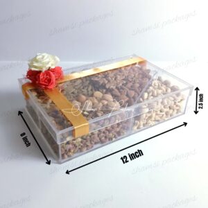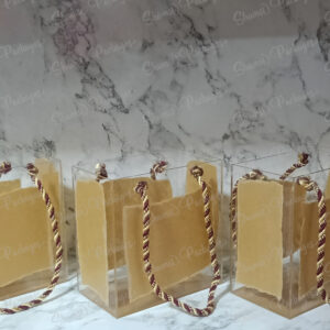 Present your gifts with a touch of modern elegance using our unique Transparent Doori Acrylic Bag. This special box-like bag is designed with an open top to provide a striking, full-view display of your contents. The defining feature is its doori (rope) handle, which allows for easy carrying or elegant hanging. Its spacious interior offers...
