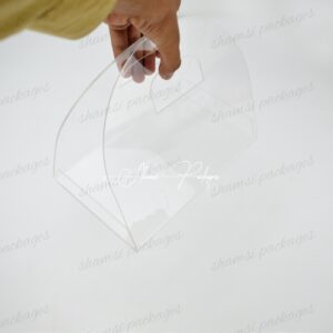 Present your gifts with the elegance of a purse using our unique Transparent Acrylic Purse Bag. This stylish bag offers a modern take on gift packaging with its full purse-like design. Crafted from premium, crystal-clear acrylic, it provides a stunning, full-view display of your contents. The subtle small side walls keep your gifts—from sacred items...