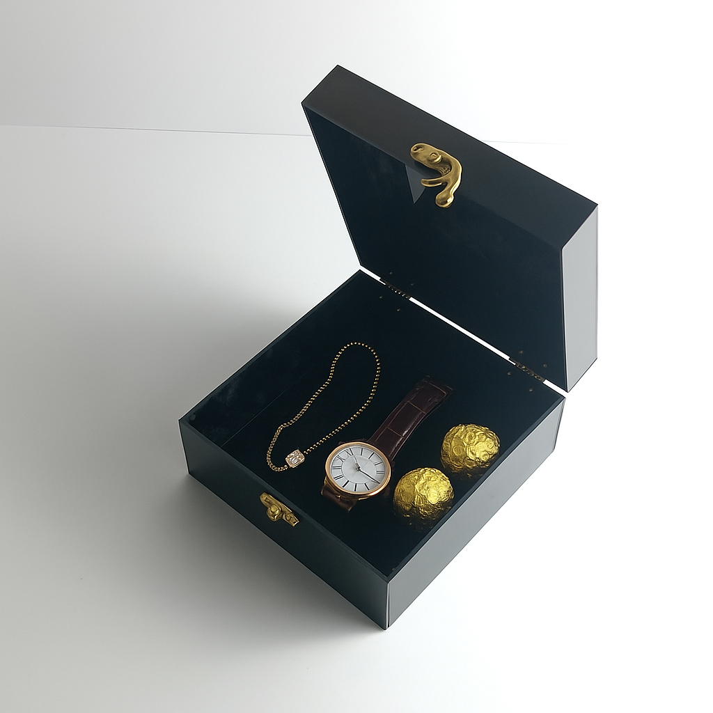 Celebrate birthdays with elegance and creativity using our premium Acrylic Drawer Box, designed to showcase your gifts in a truly unforgettable way. Featuring a transparent square top box, it provides a flawless view of your cake, sweets, or other special items—ensuring your birthday surprise is beautifully displayed and securely protected.The bottom section features a sleek black acrylic drawer with a golden knob, adding a touch of luxury and functionality. Perfect for hiding an extra surprise, the drawer is ideal for placing chocolates, jewelry, accessories, or small keepsakes, making your gift both exciting and memorable. Our decorated example shows how effortlessly this box can be personalized with balloons, flowers, ribbons, or themed décor—turning it into a centerpiece that reflects the joy, festivity, and charm of a birthday celebration.