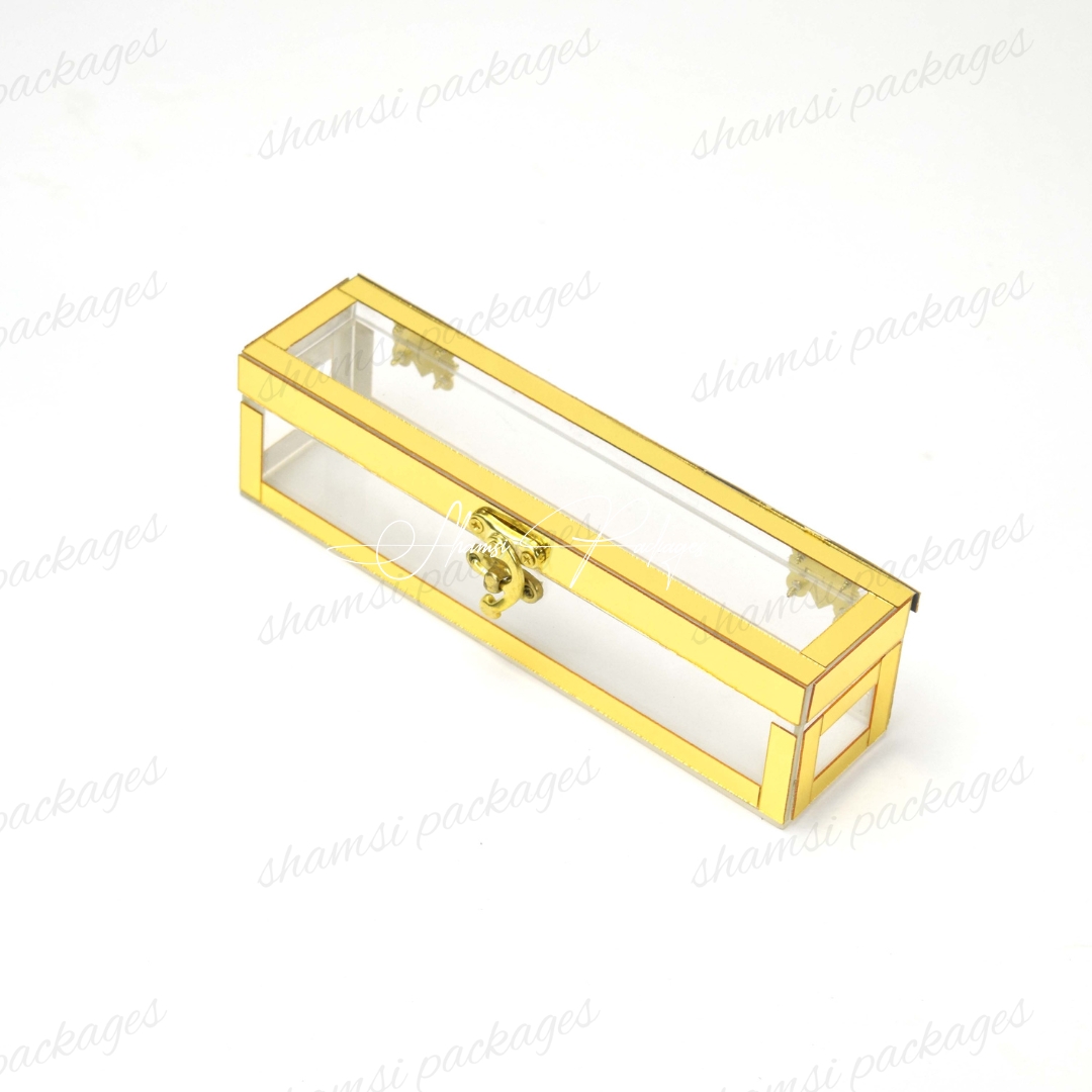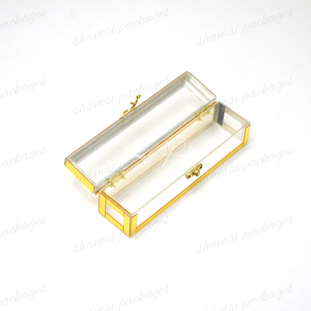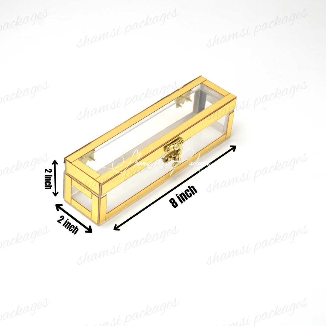 Showcase your most cherished small gifts with confidence and elegance. Our Small Acrylic Hook Box is the perfect solution for presenting items with a secure and unique design. This compact box features an innovative closure system: an anker hook at the front securely fastens to two back locks, providing both a reliable seal and a modern touch.Its perfectly sized interior is ideal for special items like Ummrah Tabarruk, small gifts such as watches, jewelry, or any other treasured keepsake. Crafted from premium, crystal-clear acrylic, this box offers a stunning, full-view display that ensures your gifts are beautifully presented and well-protected.