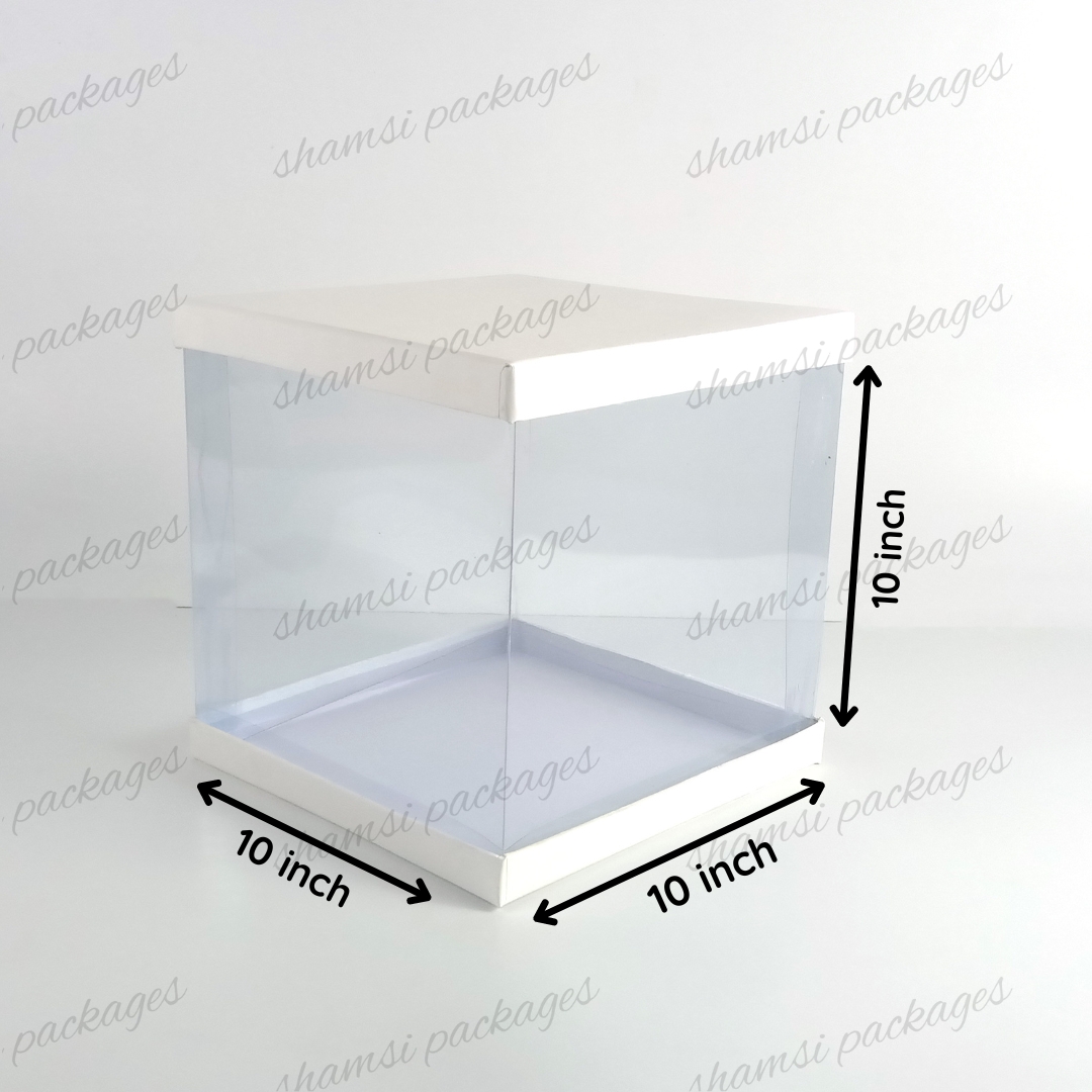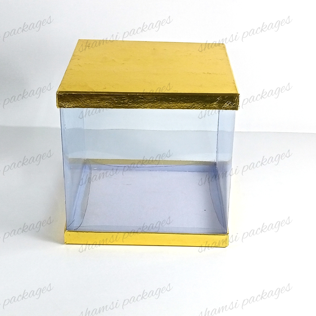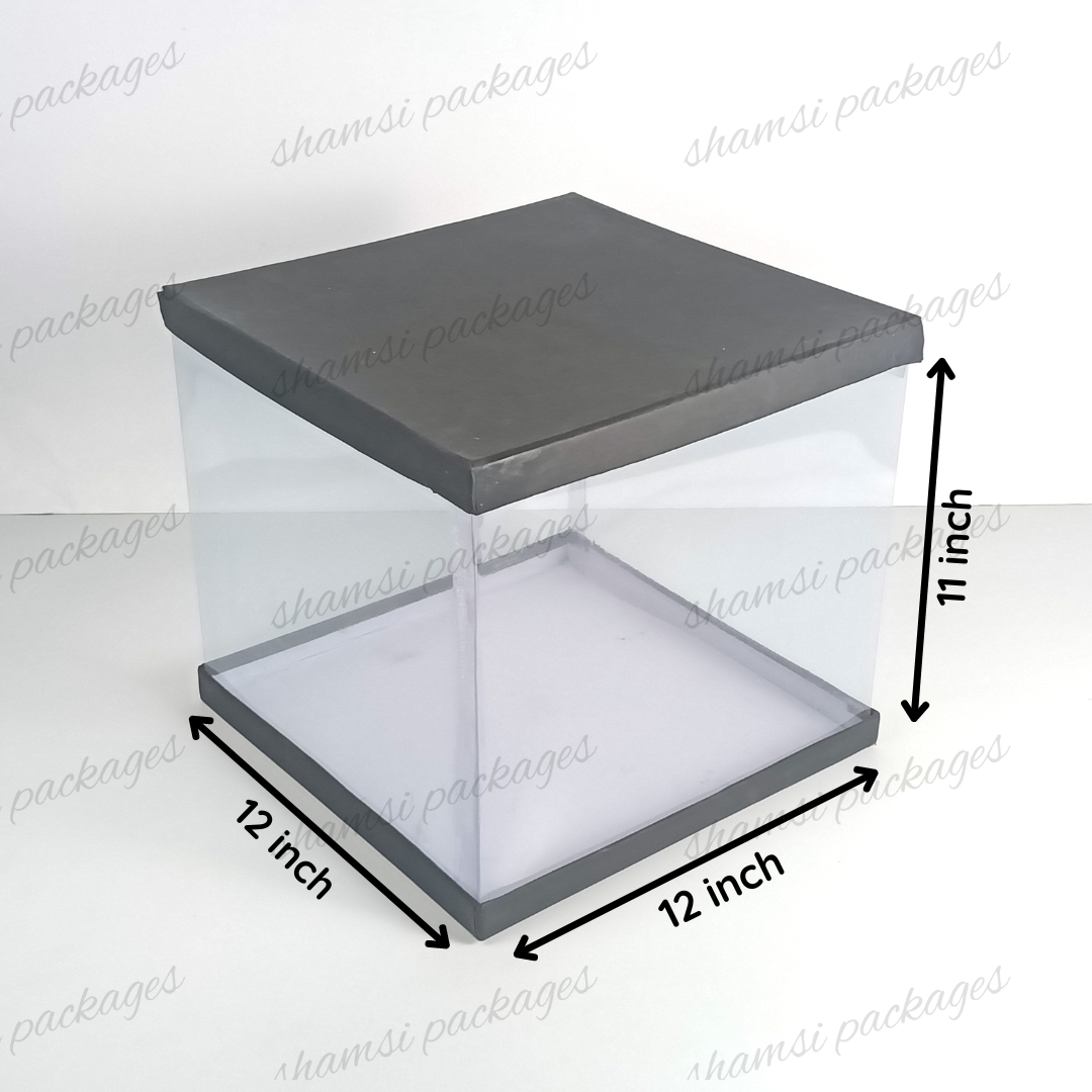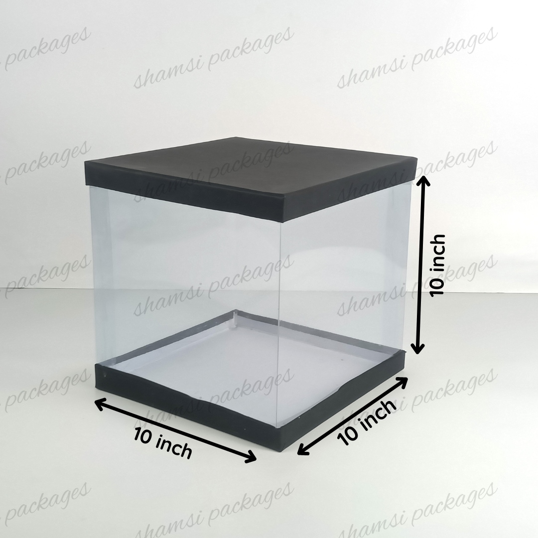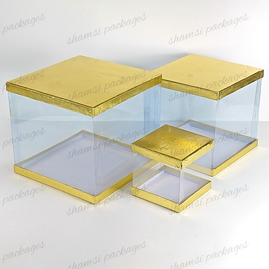 Our display boxes are designed to showcase cakes, treats, and gifts in style. With a rigid top and bottom for sturdy support, plus a center band of crystal-clear, transparent plastic, these boxes elegantly highlight whatever you place inside.