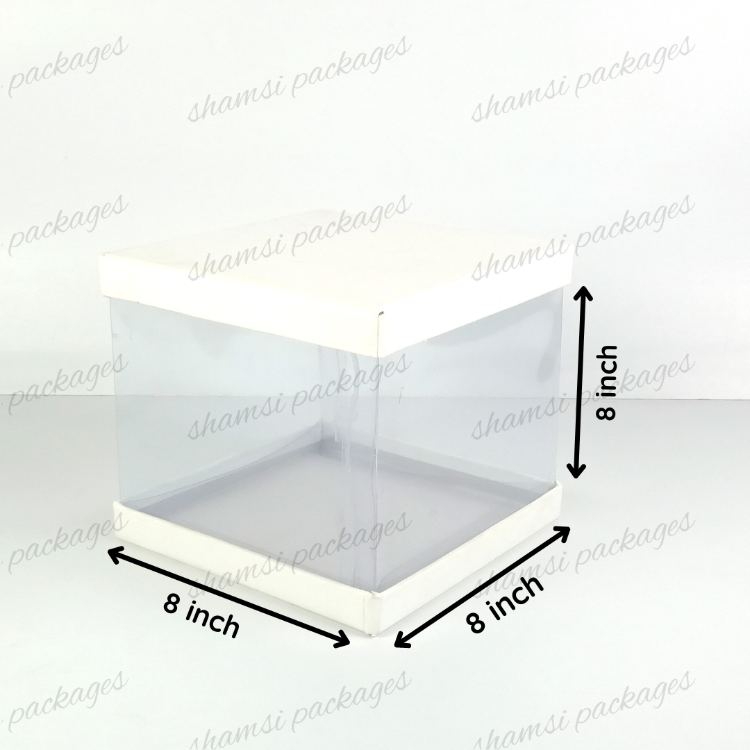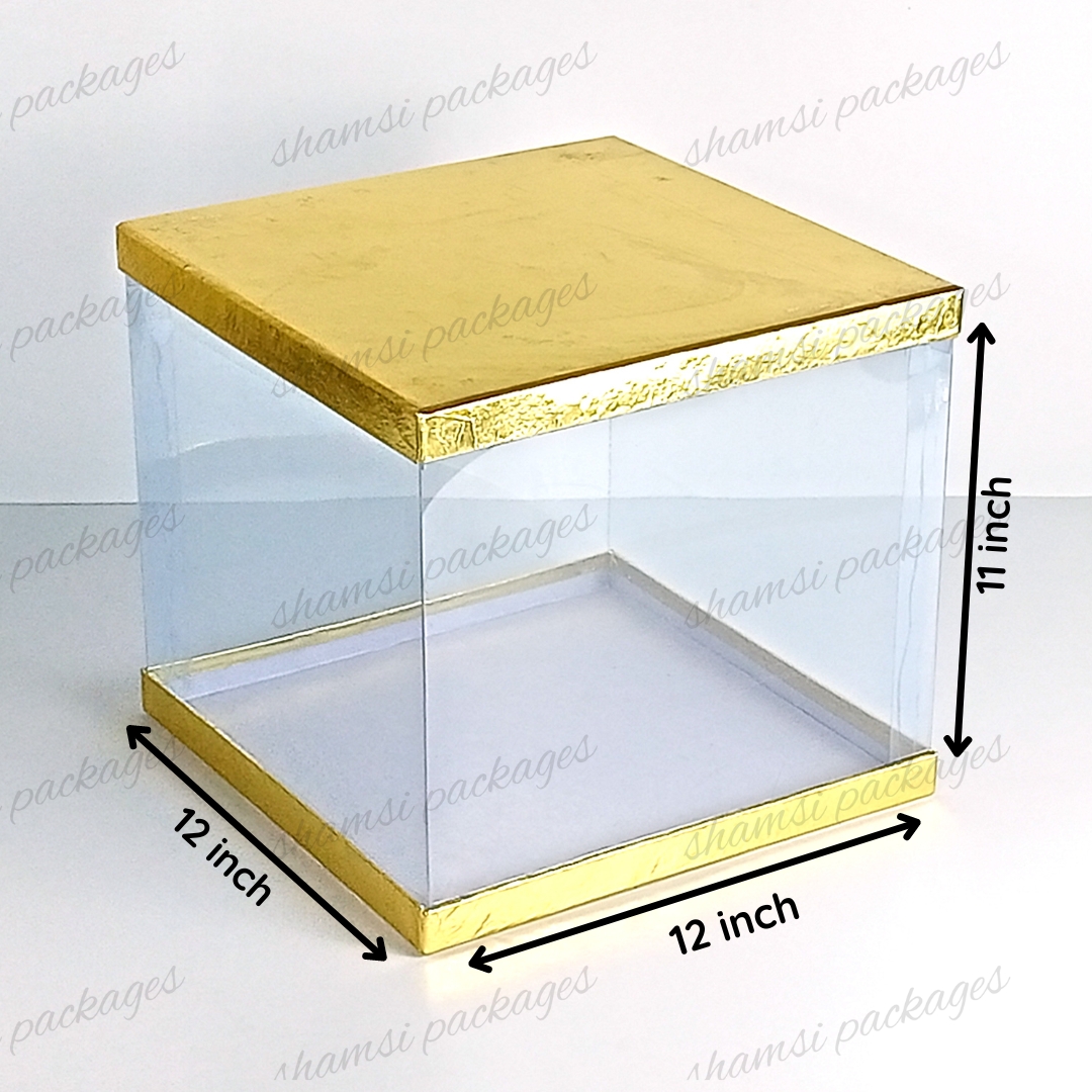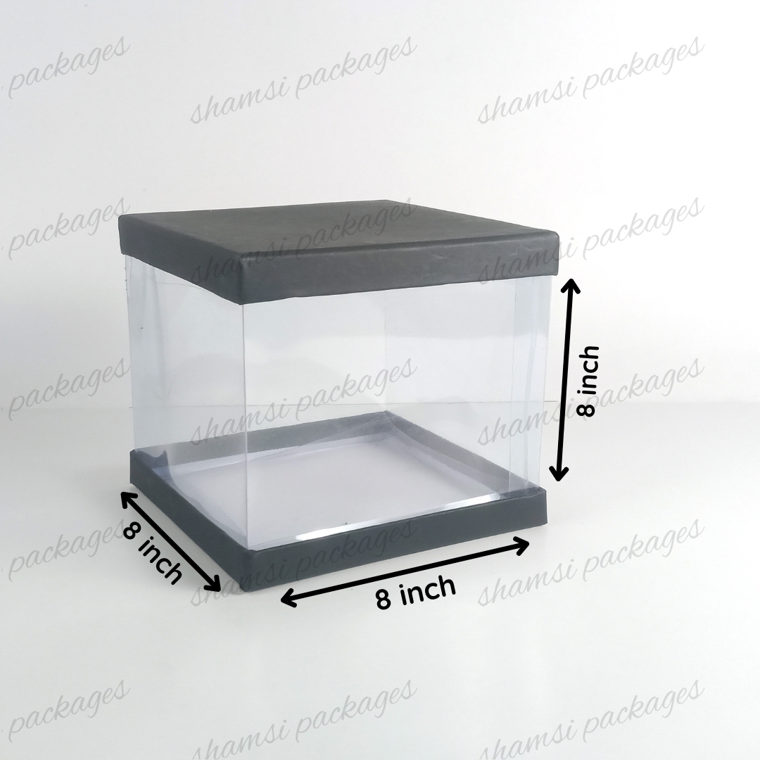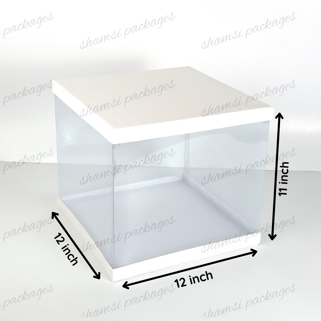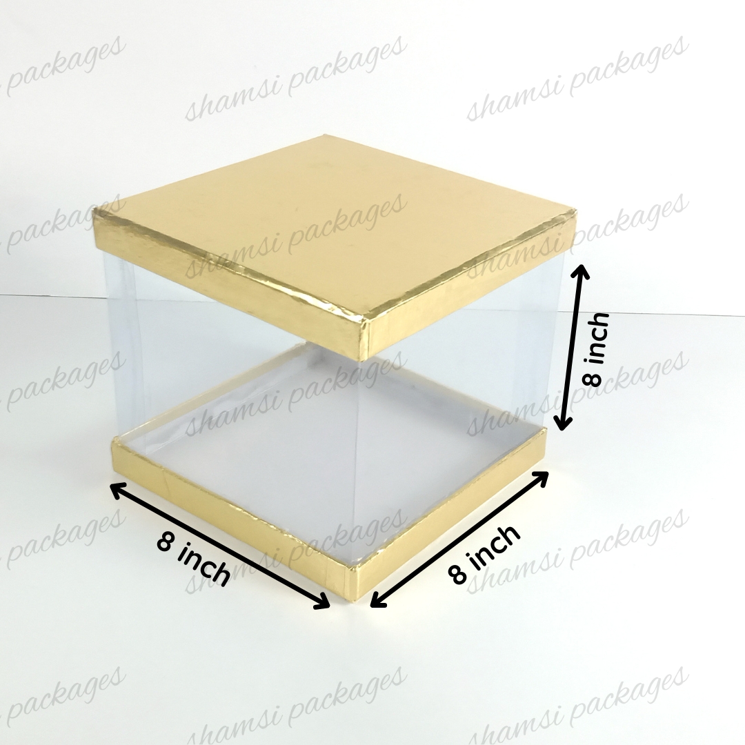 Our display boxes are designed to showcase cakes, treats, and gifts in style. With a rigid top and bottom for sturdy support, plus a center band of crystal-clear, transparent plastic, these boxes elegantly highlight whatever you place inside.