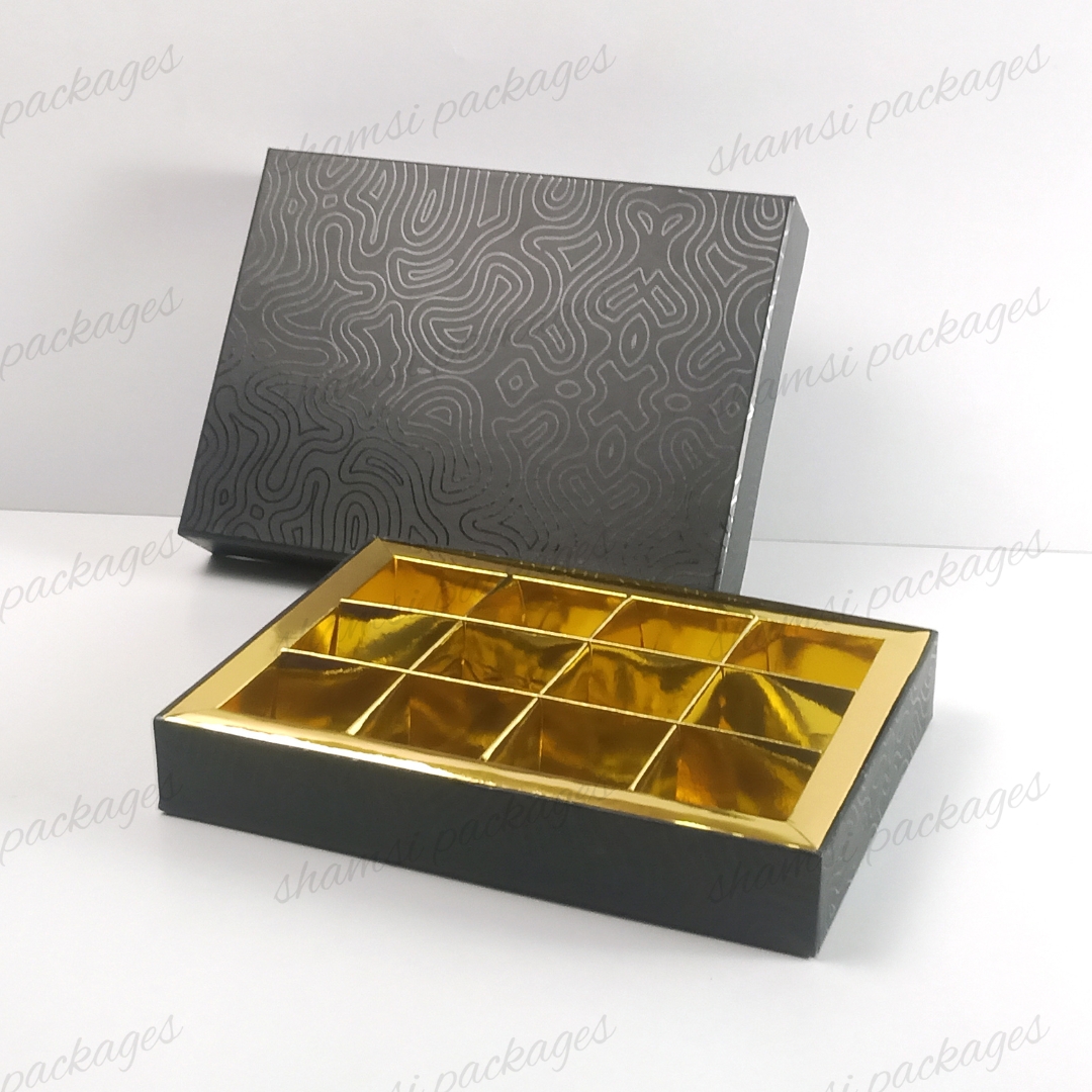 Our new Rigid Cavity Box is built to impress. Made with a strong, solid structure, this box stands out with its premium UV-printed design. Inside, a sleek golden insert with perfectly sized cavities holds your treats firmly in place. It’s the ideal way to package chocolates, sweets, or dates for any holiday or special occasion.