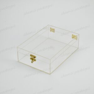 Showcase your anniversary gifts and treats with style using our Medium Acrylic Hook Box. Designed with an innovative closure system—an anchor hook at the front fastening to two back locks—it offers both security and a sleek, modern look. Perfectly sized for a variety of items, this versatile box can hold a small cake, pastries, cupcakes,...