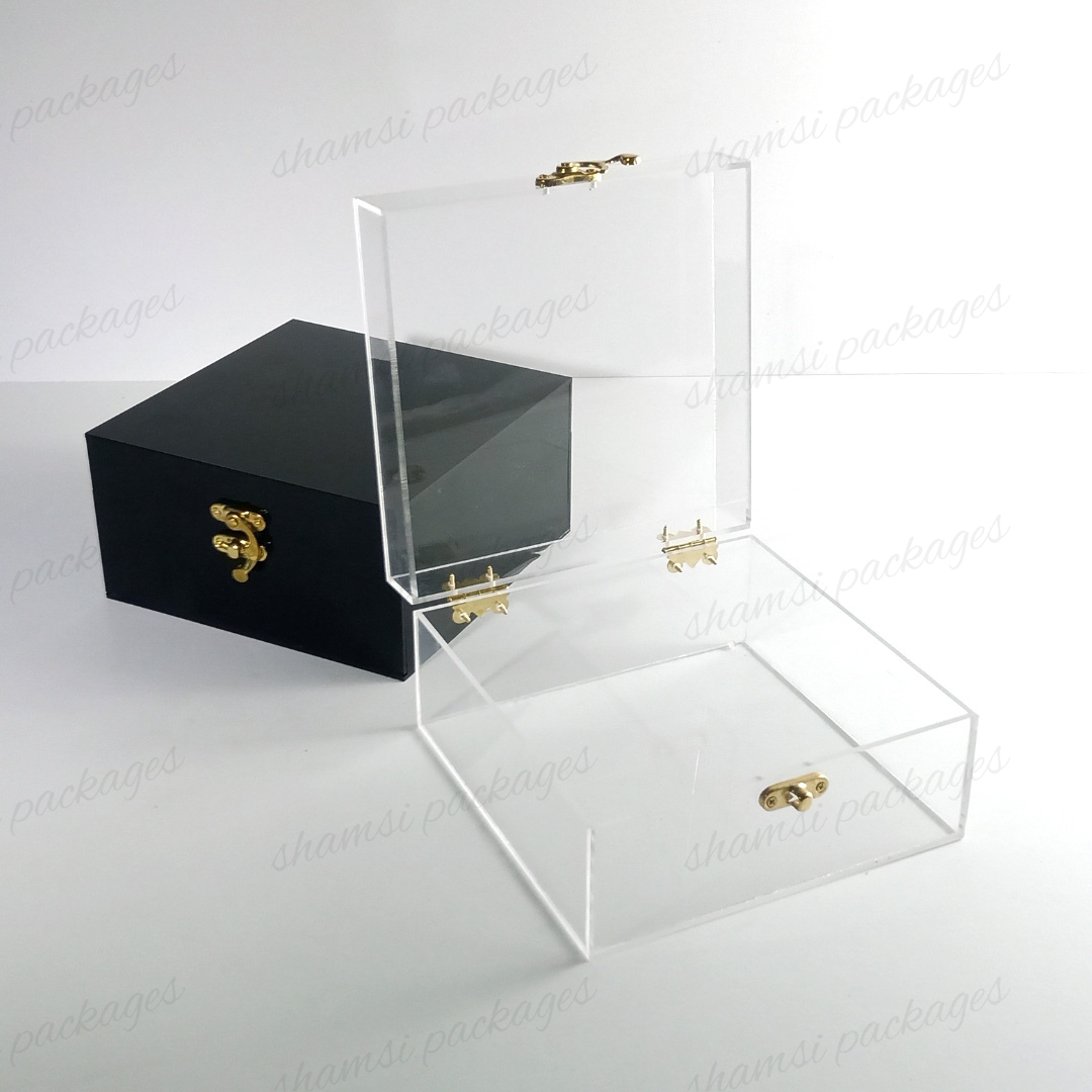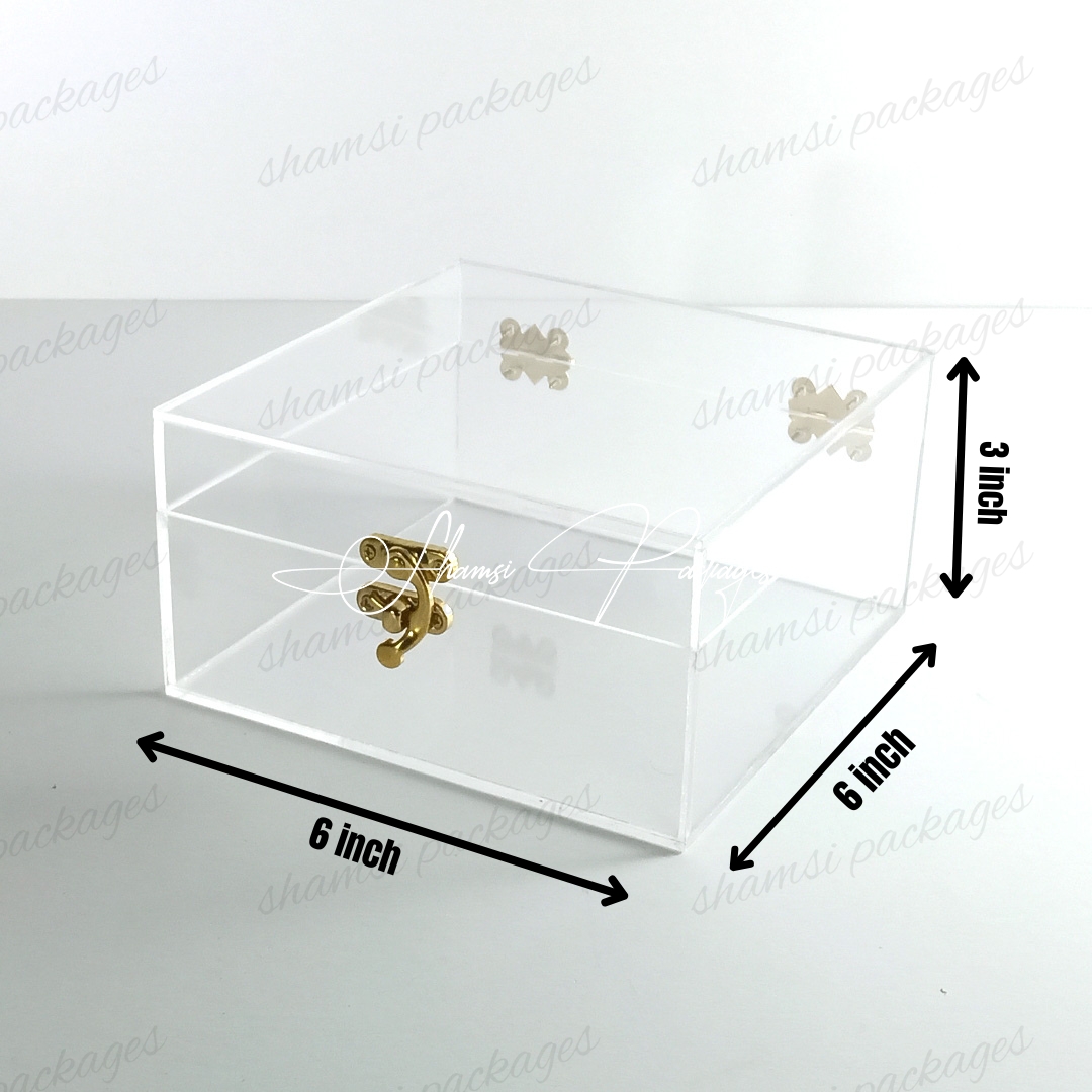 Showcase your most cherished small gifts with confidence and elegance. Our Small Acrylic Hook Box is the perfect solution for presenting items with a secure and unique design. This compact box features an innovative closure system: an anker hook at the front securely fastens to two back locks, providing both a reliable seal and a modern touch.Its perfectly sized interior is ideal for special items like Ummrah Tabarruk, small gifts such as watches, jewelry, or any other treasured keepsake. Crafted from premium, crystal-clear acrylic, this box offers a stunning, full-view display that ensures your gifts are beautifully presented and well-protected.