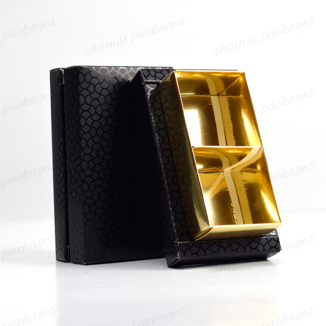 Showcase your treats with our elegant Sweet Cavity Box. The box is made from premium printed card material, enhanced with a vibrant UV design. The centerpiece is a stylish golden insert, with perfectly sized cavities to hold your chocolates, sweets, or dates. It’s the perfect packaging solution for any special event, including engagements, birthdays, and holidays.